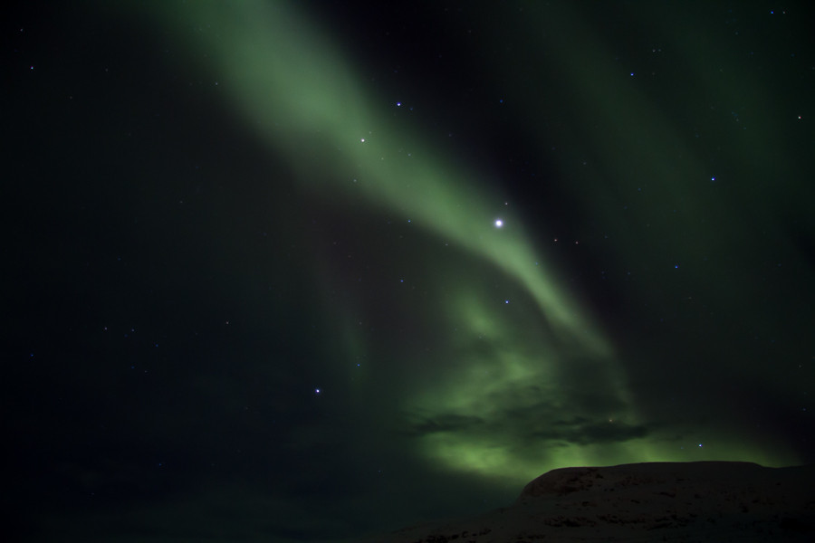 Pikku-Malla | Saanan rinne | Maisema Kilpisjärveltä | Revontulet, taustalla Jehkas |